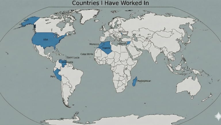 Outside of the EU I've worked across Algeria, Cabo Verde, Lebanon, Madagascar, Moldova, Morocco, Peru, Saint Lucia, USA, and Venezuela.